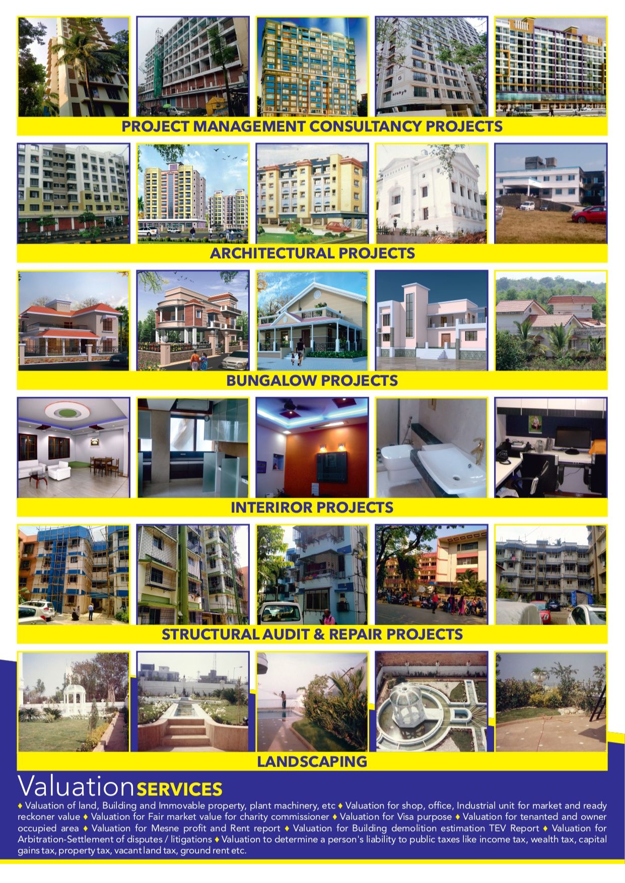 We are a multifaceted firm providing top-tier services in Architectural design, structural design, providing consulting services for structural repairs / rehabilitation, Providing project Management Consultanancy for Infrastructure Project, Redevelopment, Self Redevelopment project of residential society, Corporate projects and Interior works. and Government-registered property valuation